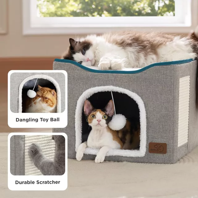 This cat house isn’t just another pet accessory — it’s a cozy hideaway and play zone all in one. Cats adore small, enclosed spaces where they feel safe, and this two-tier design gives them options to rest on top or curl up below. The scratching board satisfies their natural instincts while saving your sofa from damage. Whether it’s winter snuggles or lazy afternoon lounging, your cat will have a new favorite spot to call their own.