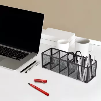 Metal Mesh Desk Organizer Set – Black Wire Pencil & Pen Holders (2-Pack)