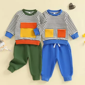 Toddler Boys 2-Piece Outfit – Striped Pullover & Solid Pants Set