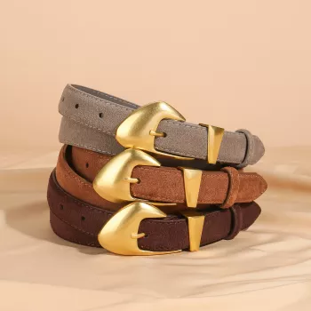 Women’s 100cm Luxury Suede Leather Belt with Gold Buckle