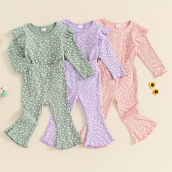 Baby Girl 2Pcs Outfit Ruffle Long Sleeve Top and Flare Pants Set